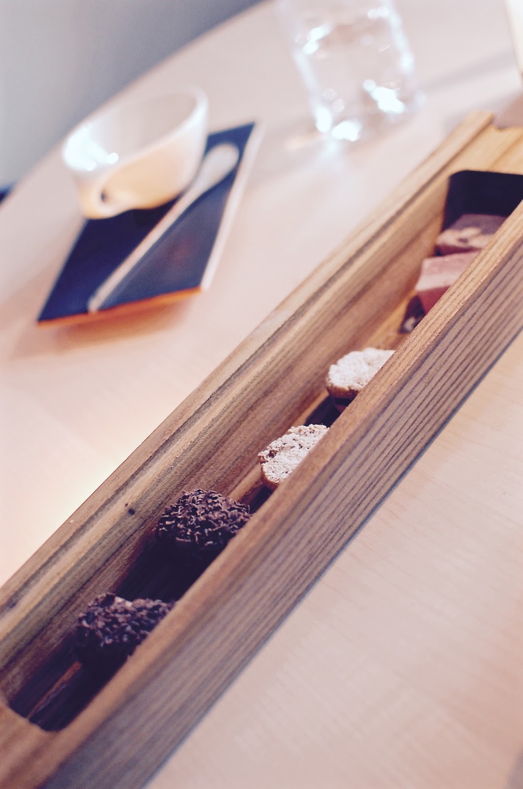 Rössyssä oli omasta mielestäni maku kohdillaan, mutta seuralaistani annos kuvotti. Myönnetään, että muusin sijaan perunan olisi voinut tarjoilla kiinteämmässä muodossa, sillä pehmeä verivanukas, paksu kastike ja perunamuusi mössööntyivät ikävästi ruokailun edetessä eikä annosta ollut lopuksi enää miellyttävä syödä. Välijuustolle annoimme molemmat peukun, vaikka hilloa olisi kyllä annokseen voinut annostella reilummalla kädellä. Pappilan hätävarassa oli ulkoisesti kaikki paikallaan ja elementit sopivat toisilleen, mutta pullia eivät pojat selvästi osaa leipoa. Pääraaka-aine olisi tarvinnut lisää kaikkea: makua, kuohkeutta, mehevyyttä ja kokoa. Lasiin kaadettu Brachetto D'Acqui antoi kuitenkin anteeksi paljon. Edes kauniin puupenaalin petit foursit eivät enää onnistuneet parantamaan mieliämme, sillä kuivahkoiksi olivat nekin jääneet. Kahvi oli hyvää, mutta suomalaisen hampaalle sitä oli liian vähän tarjolla.